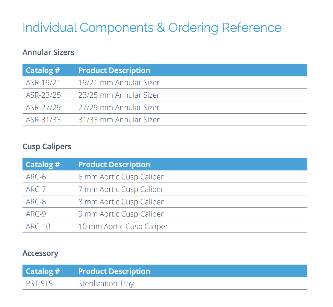 Indications: The CUSP CALIPERS and ANNULAR SIZERS are intended to aid in aortic valve repair or root remodeling. The tools are used to evaluate anatomical and geometric relationships in the aortic valve and aortic root, and may also be used to narrow the annulus further in aortic valve reimplantation
